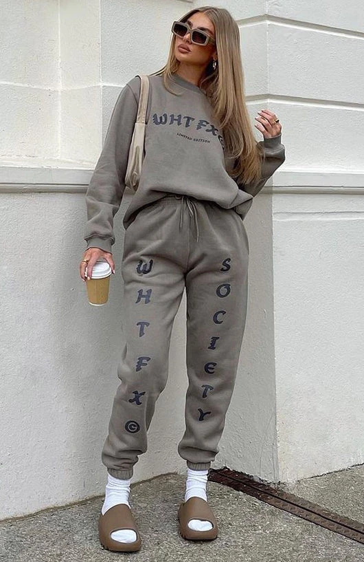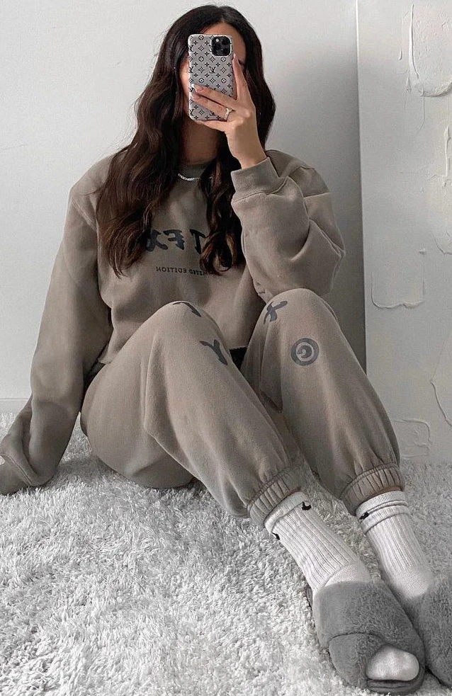 Nail the loungewear trend in our Big League Sweatpants in Mocha. These joggers have an elasticated high waistband with tie, side pockets, elasticated ankles, printed logos front of legs, and super soft fleece fabric. Complete the matching tracksuit set with either our Model Watch Sweater or Star Struck Crop for a chilled stylish look.
