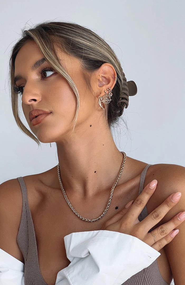 The Breaking Records Necklace in Gold is the perfect addition to any outfit. This necklace is a twist chain design with gold plated hardware and length is 46.5cm. Pair with a cute bodysuit and jeans to style up your everyday look.