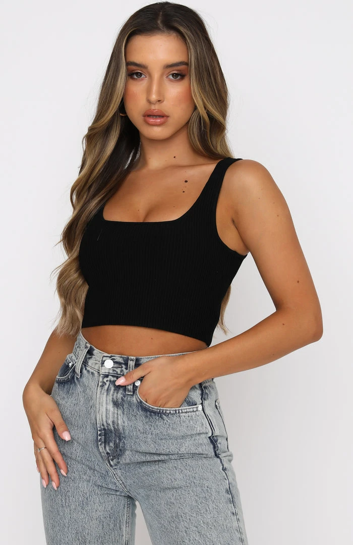 We are loving the Give Notice Crop in Black. This ribbed crop has thick straps, straight low neckline low back, and thick stretch fabric. This is the perfect basic to pair with any bottoms for a chic everyday look.