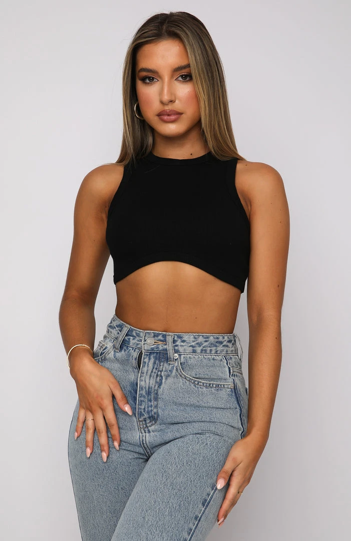 The Commit To Me Crop in Black is a summer staple in every babe’s wardrobe. This top is a racer back style with scooped neckline, thick straps, soft stretch fabric and cropped length. Pair with denim shorts and sandals and you are ready for a summer’s day beach walk.