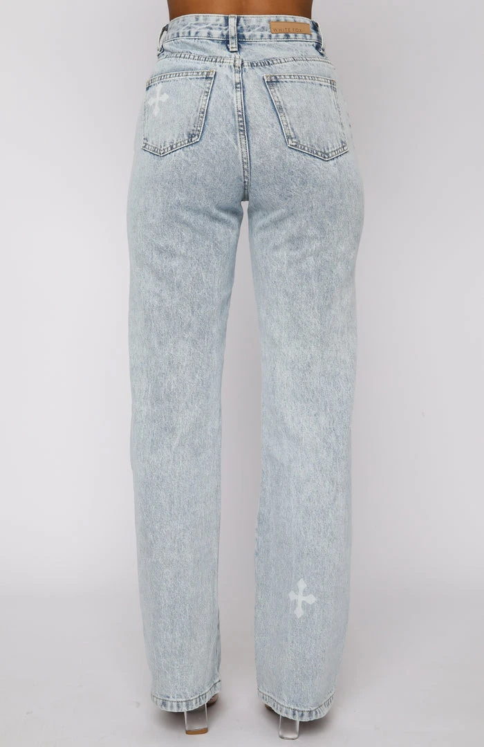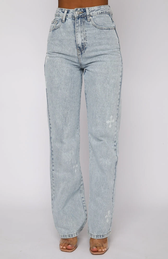 The hottest new trend, printed denim.ย The Escape Reality Jeans in Washed Blue Print are high waisted with zipper & button closure at front, belt loops, distressed rip detailing, 5 pocket design, straight leg fit, non stretch denim and print detail.ย ย Pair with a crop top or t-shirt for a relaxed everyday look.ย