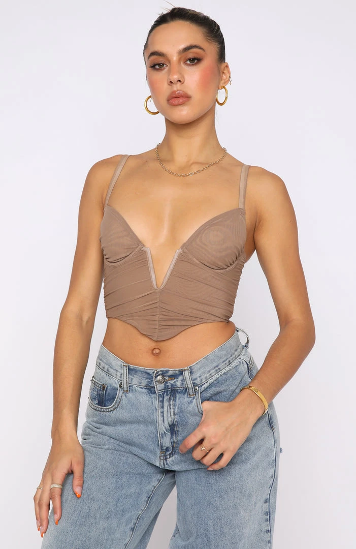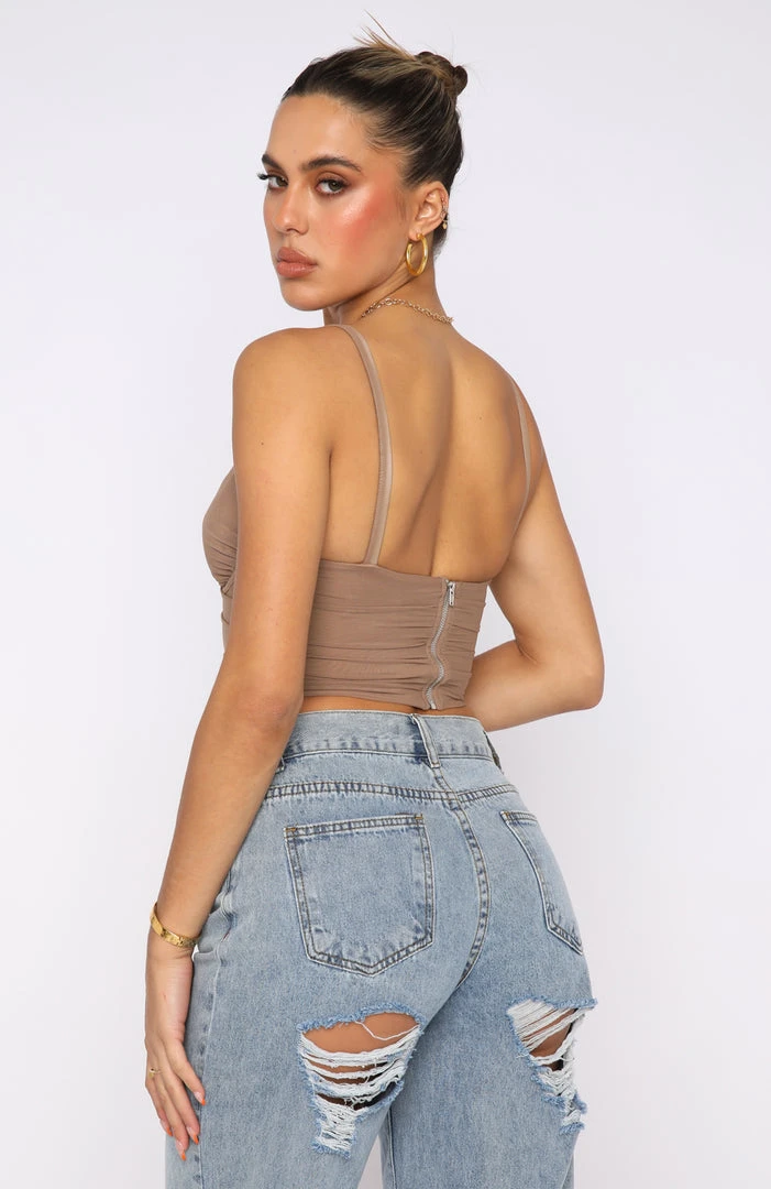 Spice up your night out look with the Forget It Mesh Bustier in Dark Nude. Featuring plunge neckline, bust underwire, thick straps, centre back zipper and stretch, mesh fabric. Style with a midi skirt and gold accessories for a look that will steal the stares.