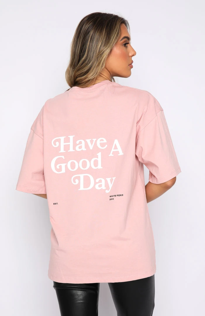 The Have A Good Day Tee in Pink is an essential in every babe’s wardrobe. This tee features a relaxed fit with short sleeves, high scooped neckline and printed logo front side and printed quote on the back. Pair with leather pants or bike shorts for a chill vibe.