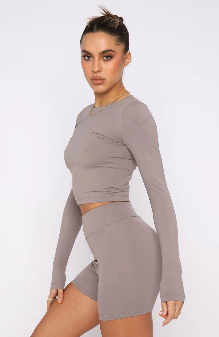 The It Takes Two Long Sleeve Crop in Mocha is perfect for this weekend’s coffee date with the girls. This top is fitted with long sleeves and stretch fabric. Style with the matching Keeping Busy Bike Shorts and sneakers and you are ready for your hot girl walk!