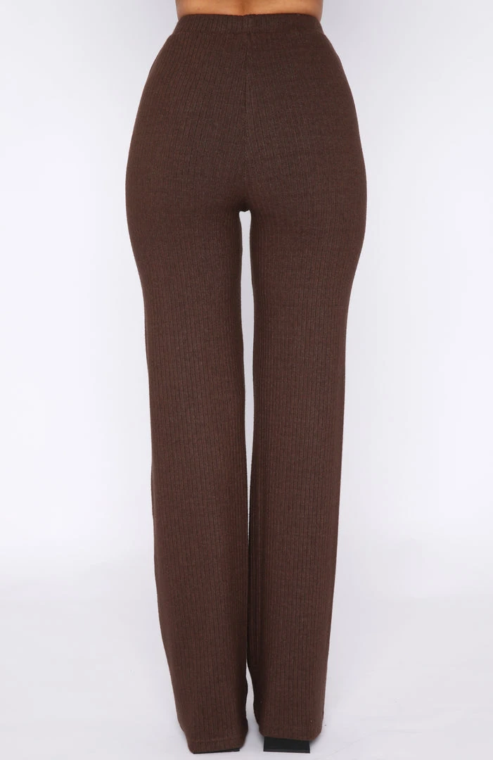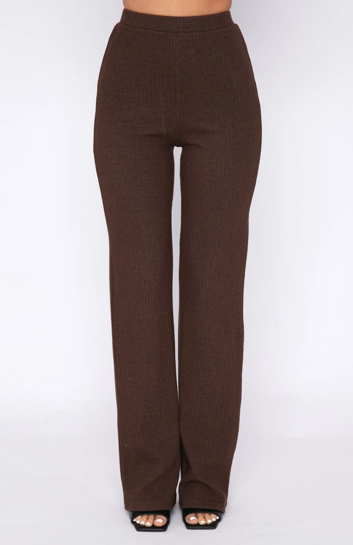 Look stylish and luxe in the Night Life Ribbed Pants in Dark Chocolate. Featuring soft stretch fabric with an elasticated waist and flare leg. Style with either the On My Side Crop, A Perfect World Crop or In The Clear Crop for the set of your dreams!