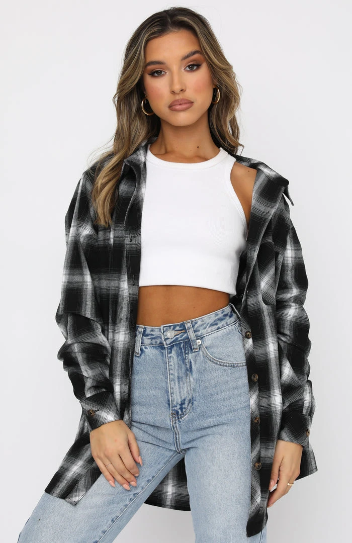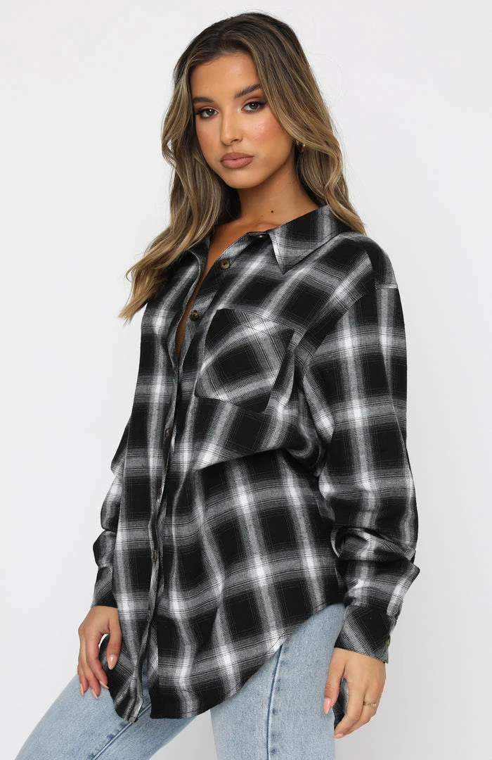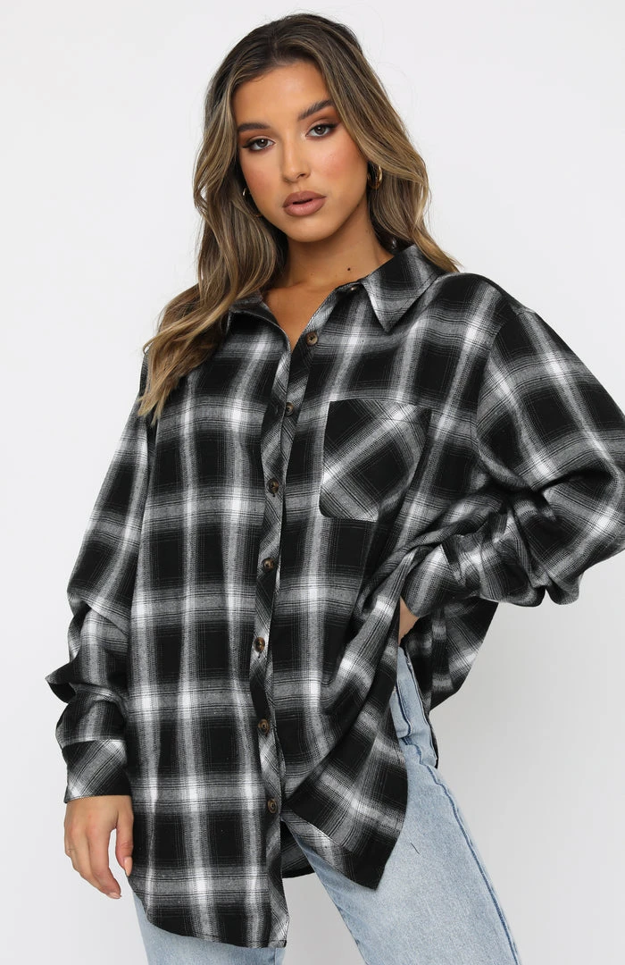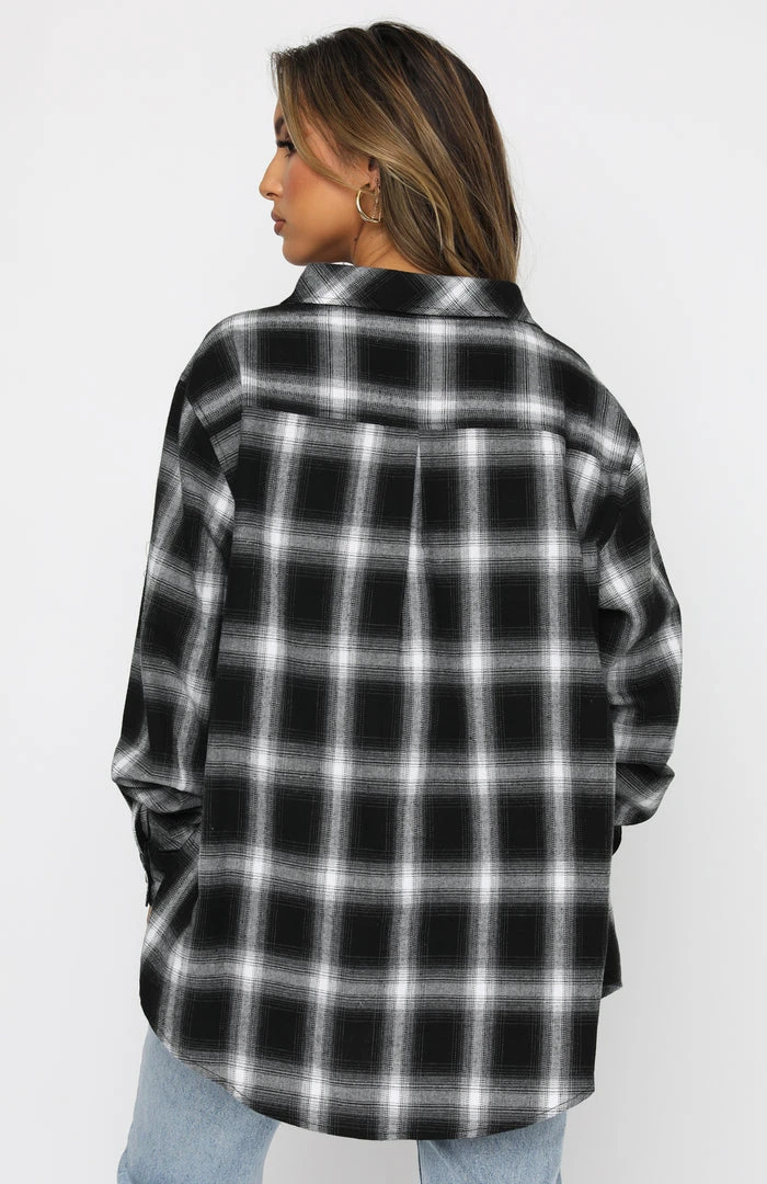 Give your off-duty look an edge in the Only Yesterday Plaid Shirt in Black. Featuring a flannelette material with button detailing, collar, front pocket and oversized fit. Style this with faux leather bottoms and ankle boots for a look we are loving.