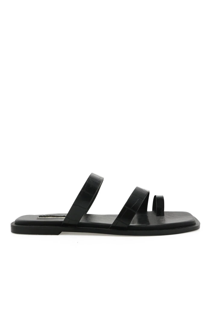 The Ordelle Slides in Black Croc are perfect for summer days. Featuring a flat rubber sole, open square toe, thick twin strap design, toe-loop design and open back design. Slide these on whether you’re going to the beach or to a picnic with the girls.