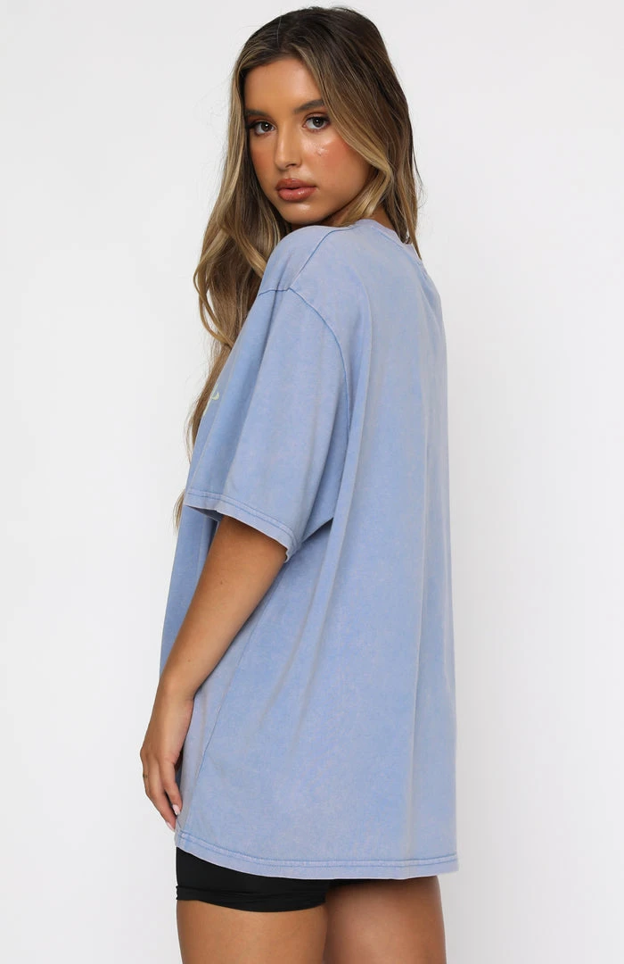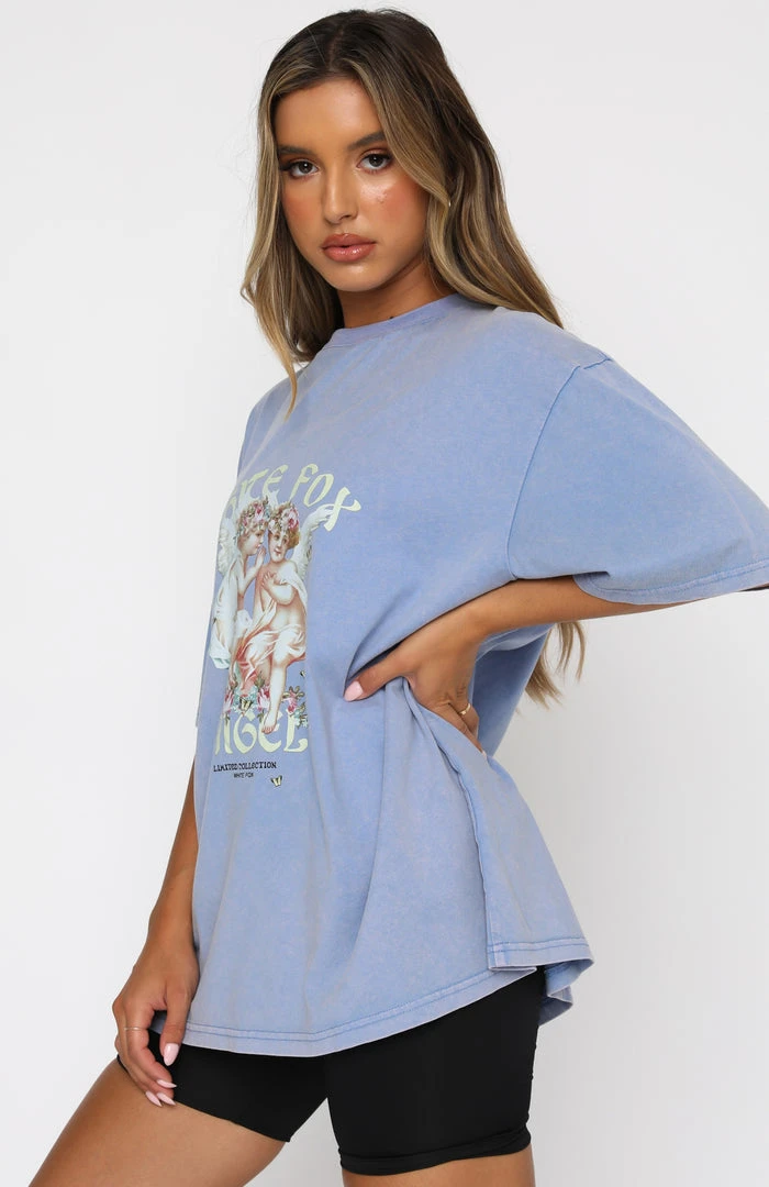The True Connection Tee in Sky Blue is the perfect choice for those relaxed days. This oversized top has slouch shoulders, high scooped neckline, soft fabric and cute printed angel graphic and logo centre front. Complete the matching set with either our Free Falling Lounge Shorts or One To Remember Sweatpants for a comfy as can be look.